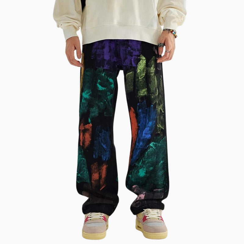 Disponible en tailles 28 à 36, ce jean convient à une grande variété de morphologies. Que ce soit pour une sortie décontractée ou pour un style urbain distinctif, le jean 'Abstract Splash' est idéal pour ceux qui cherchent à ajouter une touche d'originalité à leur tenue quotidienne. Portez-le avec un t-shirt basique ou une veste pour un look complet et stylé.