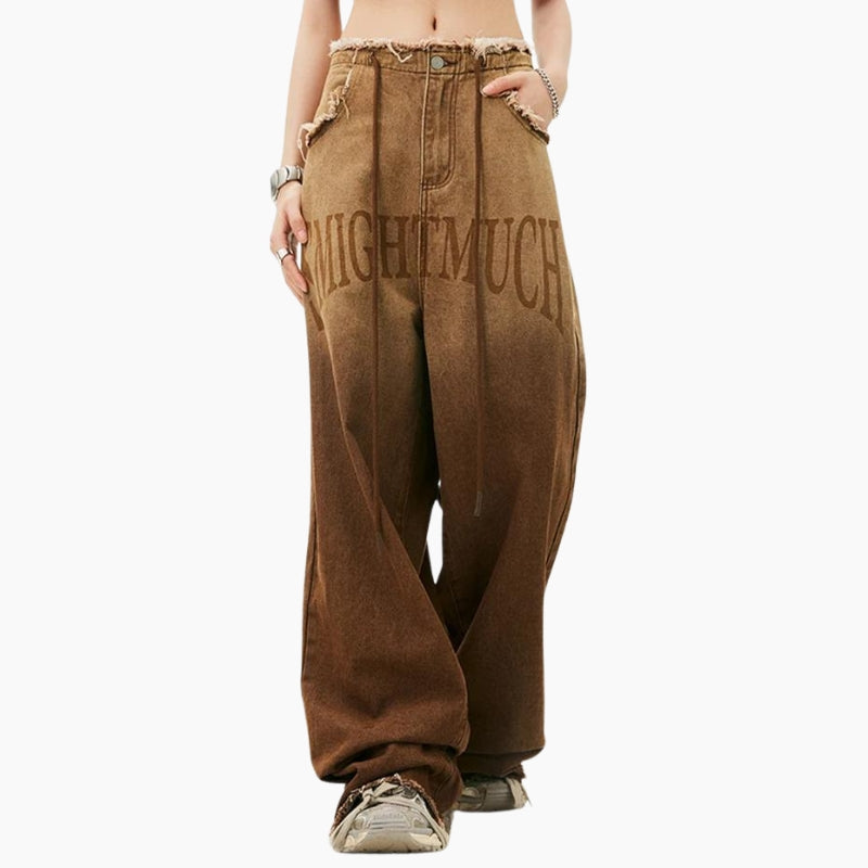 Ce jean Y2K mixte édition 'Mighty Much' incarne parfaitement l'esprit des années 2000 avec une touche de modernité. Fabriqué en denim résistant, il présente une coupe ample et confortable qui permet une grande liberté de mouvement. Les motifs et le texte 'Mighty Much' sur la jambe ajoutent une touche distinctive et tendance, idéale pour ceux qui veulent se démarquer.