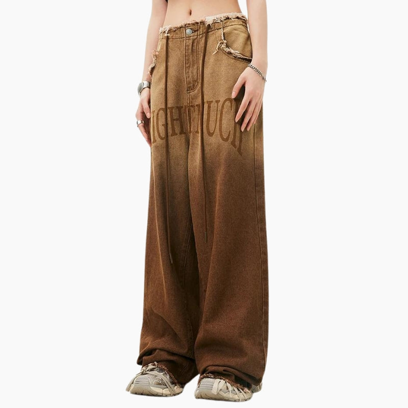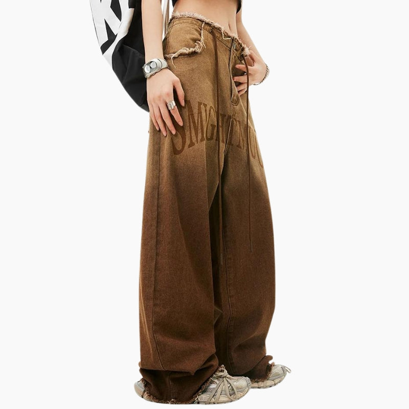 Disponible en tailles XS à XL, ce jean est conçu pour s'adapter à toutes les morphologies. Que vous le portiez avec un t-shirt décontracté pour une journée relax ou avec un haut plus élégant pour une sortie en soirée, ce jean apportera une note de style unique à votre look. Parfait pour les amateurs de mode Y2K, il allie confort et esthétique rétro avec brio.